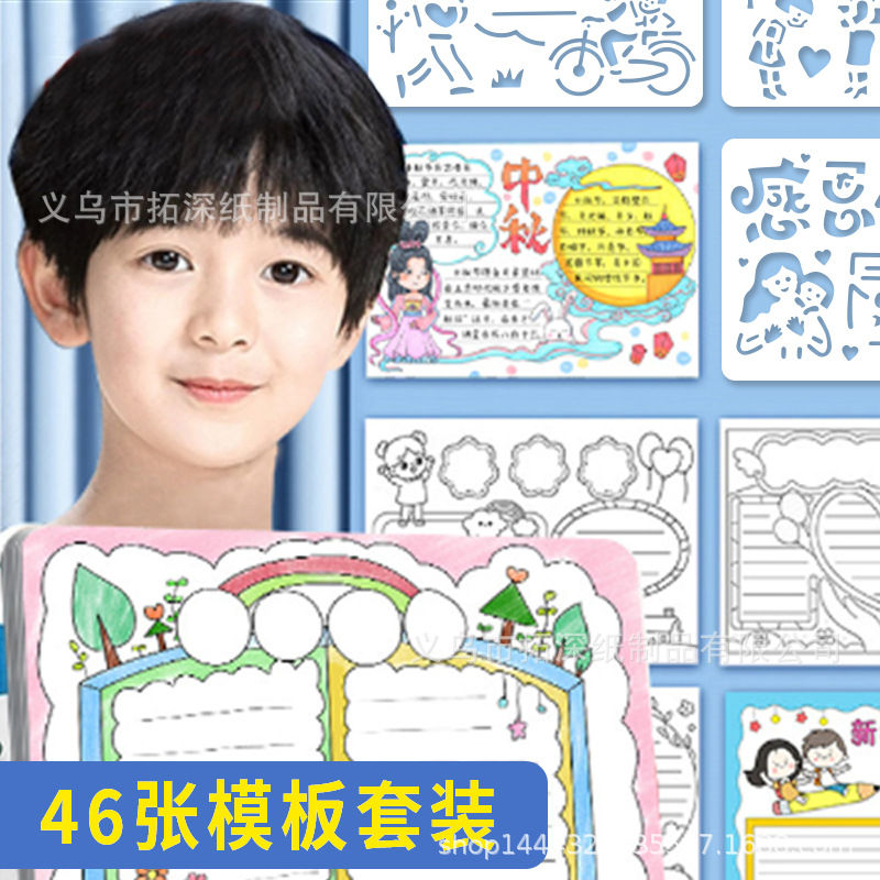 Siswa Sekolah Dasar Kampus tangan koran lukisan template laser berongga kartun kreatif lukisan hitam dan kertas putih garis draf