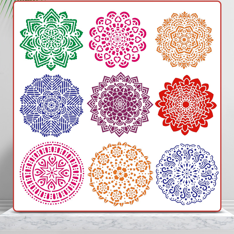 Mandala Mandala kertas dinding ubin furnitur, templat lukisan dinding lukisan semprot akun tangan DIY