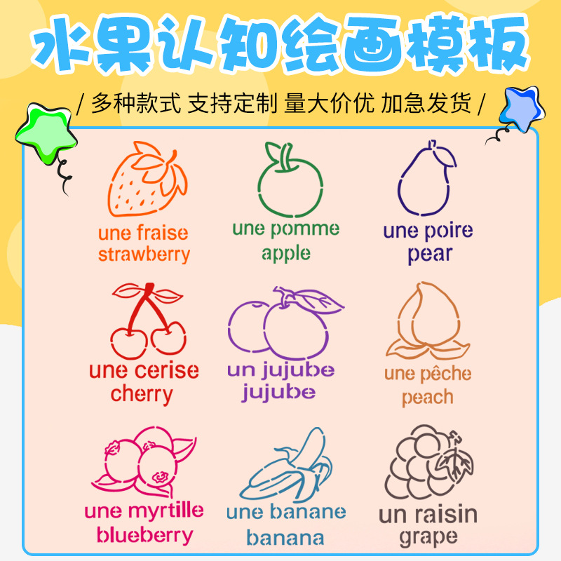 Templat lukisan buah berongga grosir lukisan dinding penyemprotan anak bantu Salin dilukis tangan hewan peliharaan setelan diy