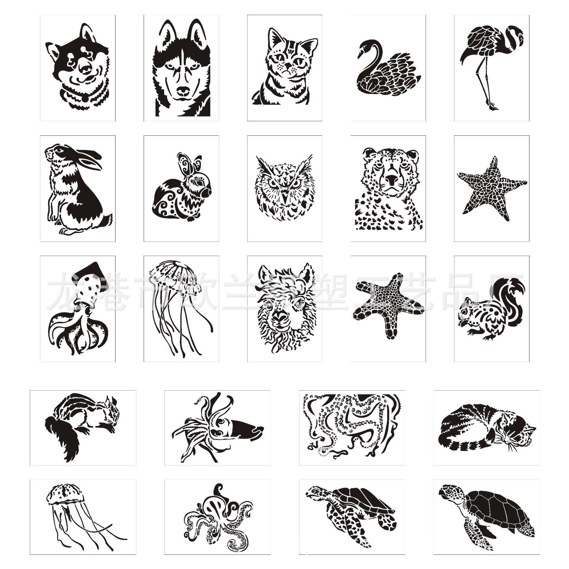 Templat lukisan hewan peliharaan grosir pabrik lukisan dinding papan salinan grafiti anak karakter dekoratif hewan diy templat berongga