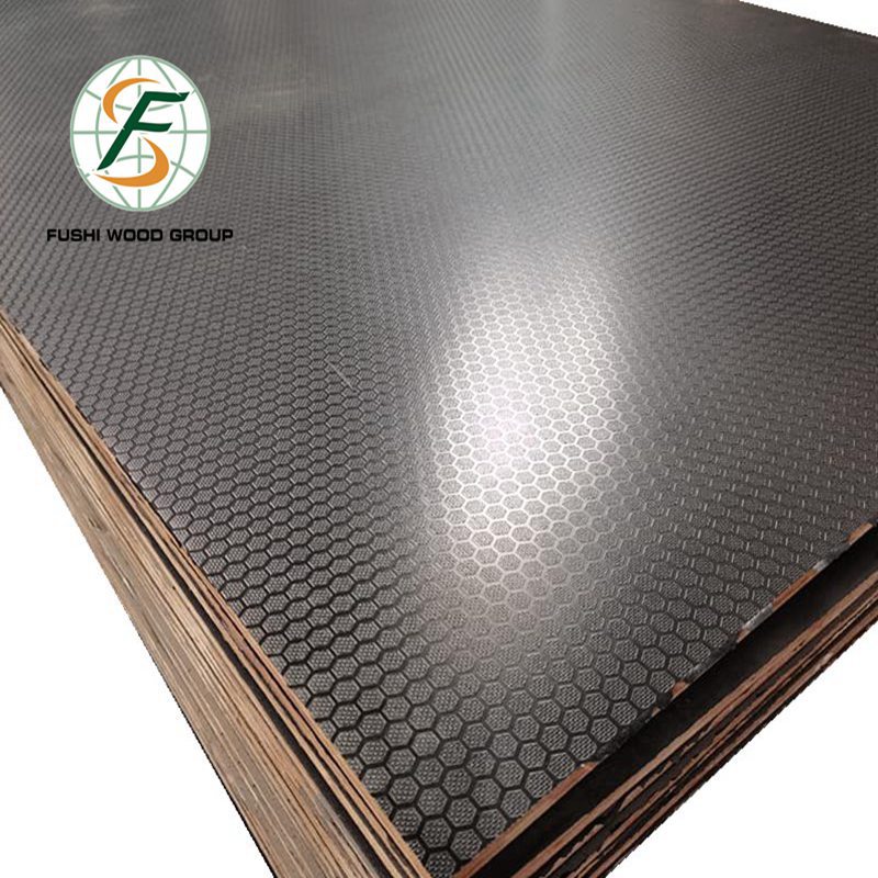 Produsen menyediakan 12mm tebal papan dilapisi heksagonal sisi antiselip templat bangunan struktur 9-lapis