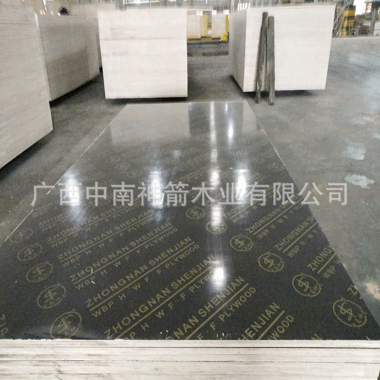 Papan Laminating Hitam Tengah dan Selatan Panah Air Bersih Berlapis Dua Sisi Film Resin Fenolik Dua Sisi Proses Pengamplasan Dua Sisi