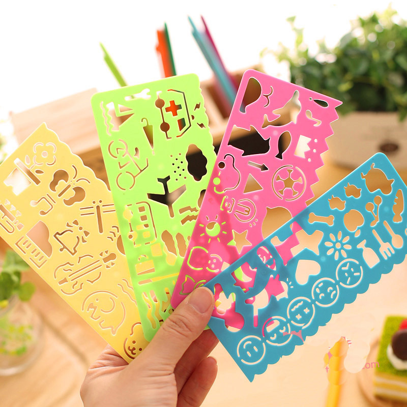 Templat lukisan kartun DIY penggaris renda warna PP gambar tangan tulisan tangan koran berongga warna templat pengisi stok