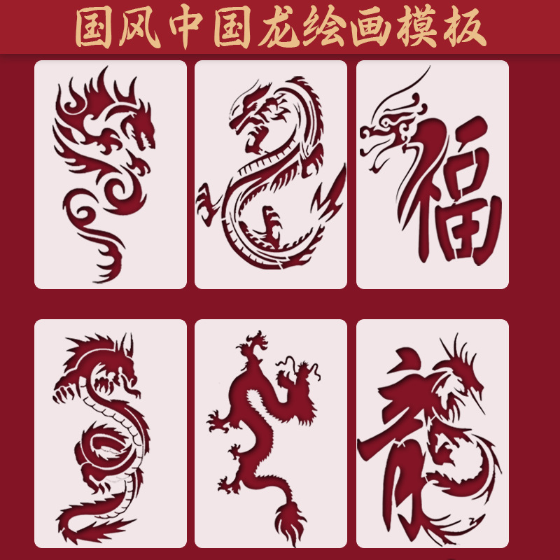 Naga tahun berongga berbagai model lukisan mode nasional gaya fu karakter naga gambar tulisan tangan naga Cina diy pola dicetak tangan