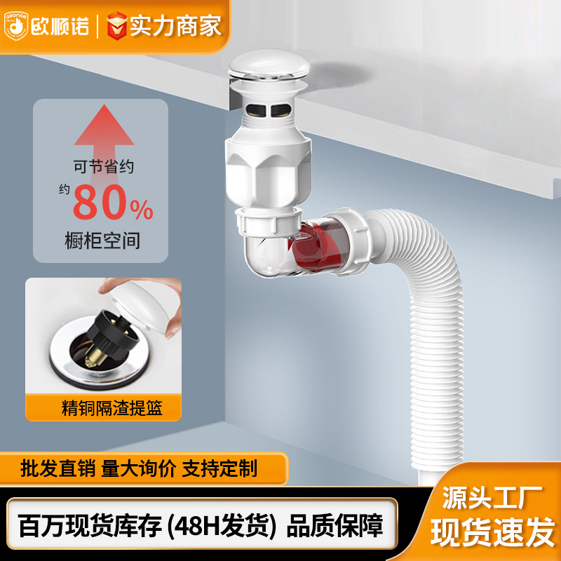 Wastafel wastafel downcomer kabinet kamar mandi, pipa air deodoran universal bebas lubang pengering horizontal kabinet kamar mandi