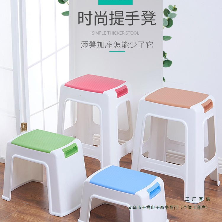 Bangku Plastik Ekstra Tebal Bangku Plastik Rumah Tangga Kursi Makan Meja Kopi Kamar Mandi Bangku Persegi Kecil Pabrik Rambut Lurus