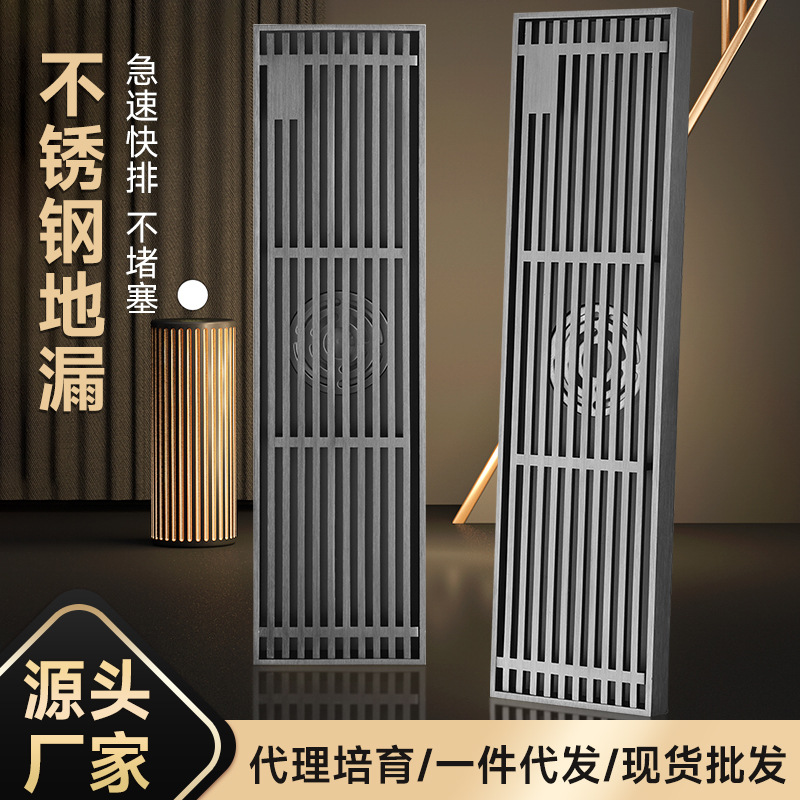 304 saluran air lantai panjang baja tahan karat grosir teknik perpindahan besar kamar mandi lantai kamar mandi saluran pembuangan sisi anti-meluap