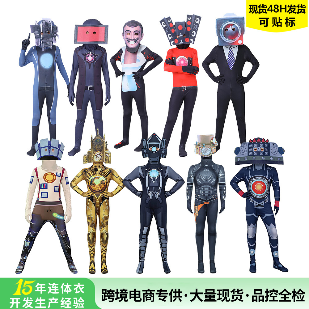Skibidi toilet ketat TV man jumpsuit pakaian cosplay monitor pria vs toilet pria